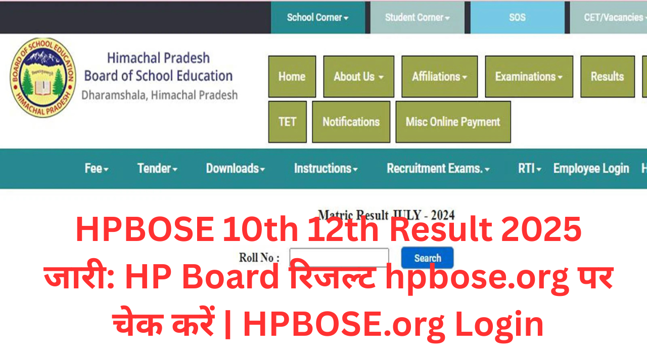 HPBOSE 10th 12th Result 2025 जारी: HP Board रिजल्ट hpbose.org पर चेक करें | HPBOSE.org Login
